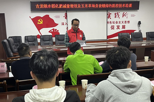 会上,郭家锋重点讲授了水稻施肥原则、施肥建议及各时期施用量占总施肥量的比例,结合秸秆还田技术,通过“前促,中控,后攻”的水肥管理措施达到“化肥减量,农业增效”可持续的生态发展要求;强调要高度重视农业害虫玉米草地贪夜蛾的防控,因其具有迁飞性、暴发性和灾害性,一定要做好田间识别和防控监测,抓住害虫“低龄期”施药防治,提高防效。