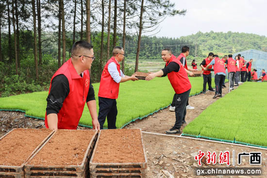 主题党日活动搬运秧盘现场。杨小燕 摄