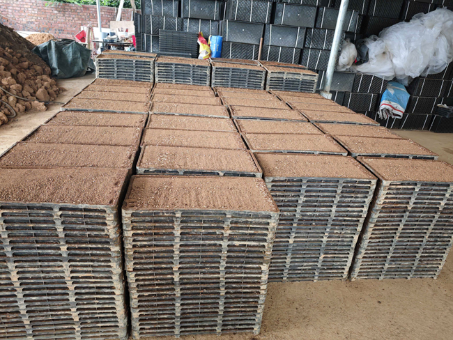 合作社负责人郭传业介绍说,本批次育秧500盘,预计可种植水稻220亩,现在使用机械化育秧生产线播种,大大提高了生产效率,8个工人个半天就可以完成育秧装盘、摆盘等全部工作。以前全部使用人工操作,至少需要2天时间才能完成。