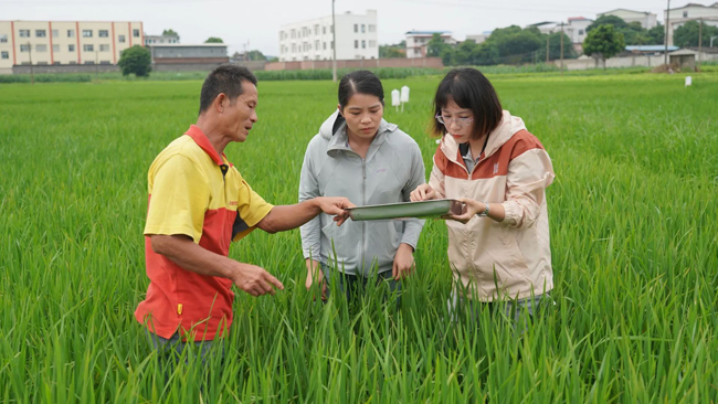 当天,一堂关于水稻病虫害防治及前中后期栽培管理的“田间课堂”正在进行,基层农技人员和种植户认真听课。
