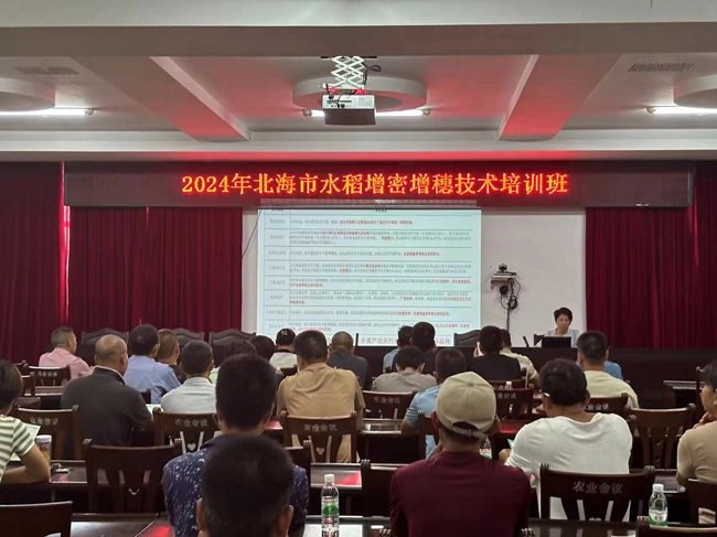 今年以来,北海市农业技术服务中心积极落实《广西水稻增密增穗三年行动方案(2024-2026年)》,组织开展水稻增密增穗技术系列培训,努力推广关键技术,通过推广一系列简易操作的实用技术,力争粮油作物单产显著提升。