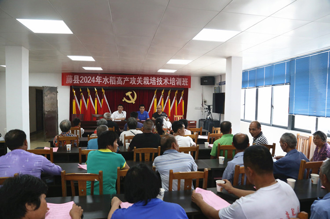 为了进一步提升我县农民科学种田技术水平,促进水稻单产和品质提升,5月27日起,藤县农业农村局到2024年早稻创建水稻高产攻关相对连片核心示范片所在村举办水稻高产攻关技术培训班。
