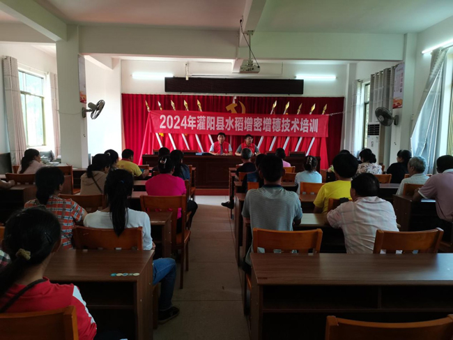 今年以来,灌阳县认真贯彻落实广西水稻增密增穗三年行动方案(2024—2026 年)文件精神,把落实水稻增密增穗工作作为提高粮食单产的重要措施来抓,通过整合水稻高产攻关、粮油作物单产提升等项目资金、加大政策扶持力度、强化科技攻关、创新培训方式方法等举措,水稻增密增穗工作在全县九个乡镇全面铺开,辐射带动了水稻增密增穗大面积增长,到目前为止,全县完成水稻增密增穗面积4.02万亩(其中早稻2.0万亩、中稻2.02万亩),全县建立连片100亩以上早(中)稻增密增穗示范点10个,示范面积2000亩,辐射带动了全县水稻增密增穗栽培模式大面积增长,促进了粮食增产、农民增收。