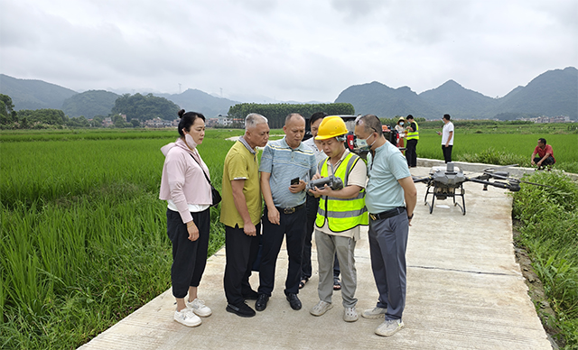 目前正值水稻玉米等粮食作物生长关键期,也是病虫高发期。为科学有效防控病虫害,保障农业生产安全,按照2024年广西“虫口夺粮”保丰收行动方案要求, 6月7日,昭平县农业农村局组织植保专业人员深入凤凰乡营盘村开展统防统治飞防作业,通过利用植保无人机精准施药,高效进行田间管理,扩大统防统治覆盖范围,提高农作物重大病虫害绿色防控覆盖率,减少化学农药使用量,为粮食生产保驾护航。