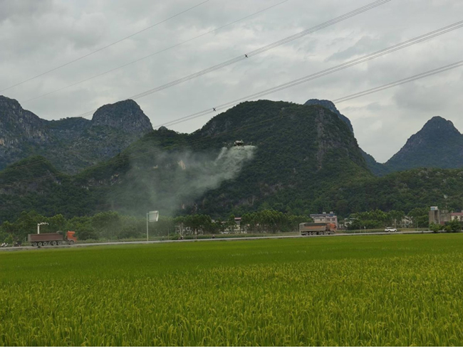 无人机开始喷洒药剂