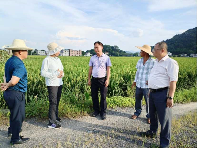 2024年6月27日,自治区农业技术推广站二级调研员李明灌到贺州市八步区调研“一喷多促”、水稻高产攻关、水稻增密增穗等项目实施情况。