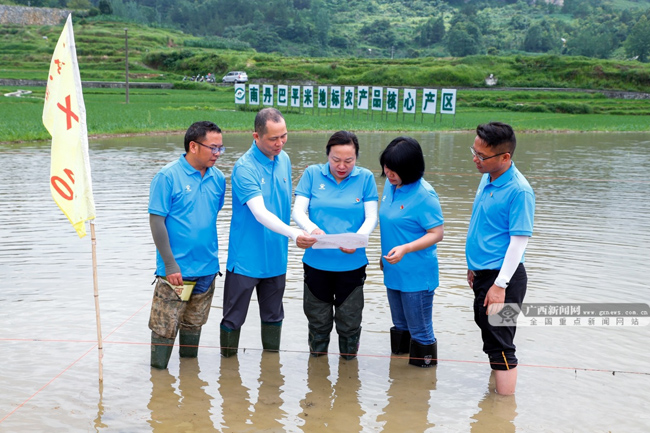 近日,南丹县农业农村局组织农业技术志愿者到巴平万亩梯田开展“农业强国”稻田画制作主题党日活动。