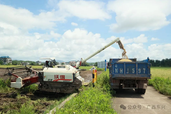 眼下,东兴市各地早稻陆续开镰收割