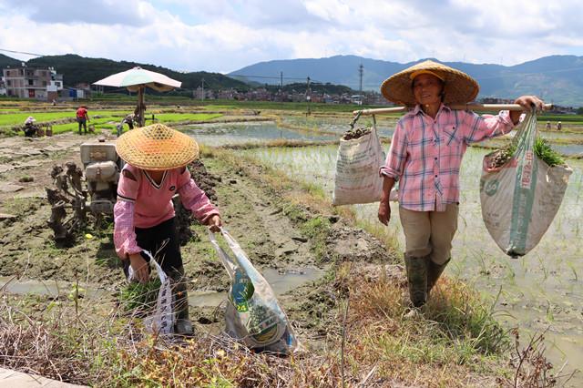桃加村群众把杂交水稻制种秧苗送往大田移栽