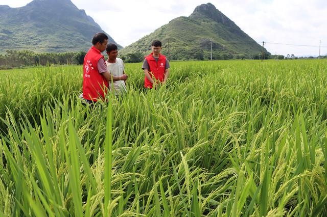 桃加村群众忙着给早造杂交水稻制种赶花