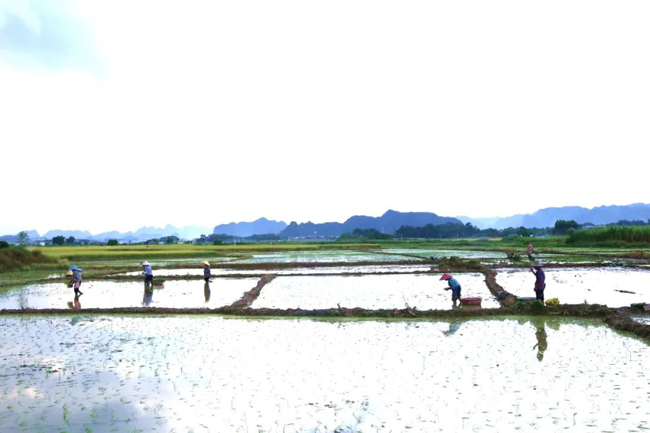 近日,记者在白圩镇万亩垌看到,伴随着机械设备的隆隆声响彻田野,抽水松土,插秧施肥,农民朋友们卷起裤腿,手持秧苗,或是单独一人,或是两三人一组,将秧苗一株一株地插入泥土中。农民朋友忙碌的身影与绿油油的秧苗交织在一起,构成了一幅生机勃勃的田园画卷。