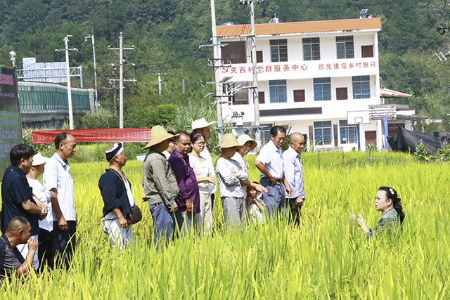 近日,在南丹县八圩瑶族乡关西村的水稻试验田里,该县土肥站技术员正在给当地群众认真讲解如何通过化肥减量增效技术措施提高水稻产量。