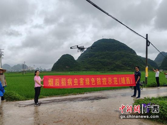 无人机投放天敌赤眼蜂防控水稻螟虫。韦学平 摄