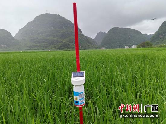 核心示范田安装迷向剂散发装置防治二化螟。农世英 摄