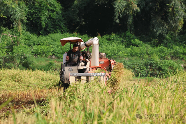 近日,武鸣区宁武镇华山村的中稻陆续成熟进入收割期,村民们抢抓农时,抢收稻谷,确保颗粒归仓。