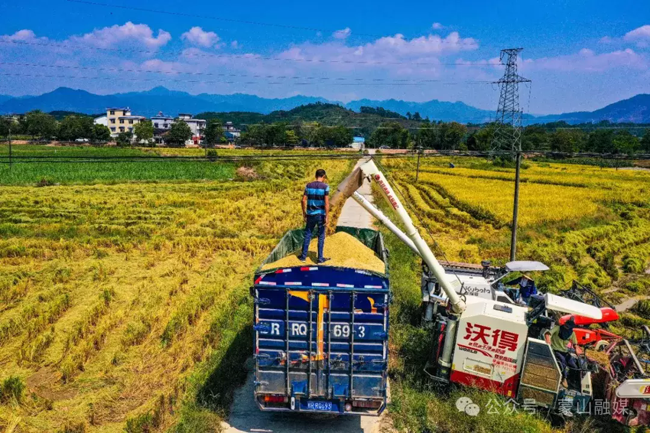 风吹稻浪谷飘香,稻田美景入画来。眼下正值水稻丰收季节,近日,走进西河镇龙蟠村,田间地头金灿灿的稻穗铺满了稻田,随着收割机圆筒不停抖动,一颗颗饱满的谷粒卸满路边等候的农用三轮车,农民们脸上丰收的喜悦溢于言表。
