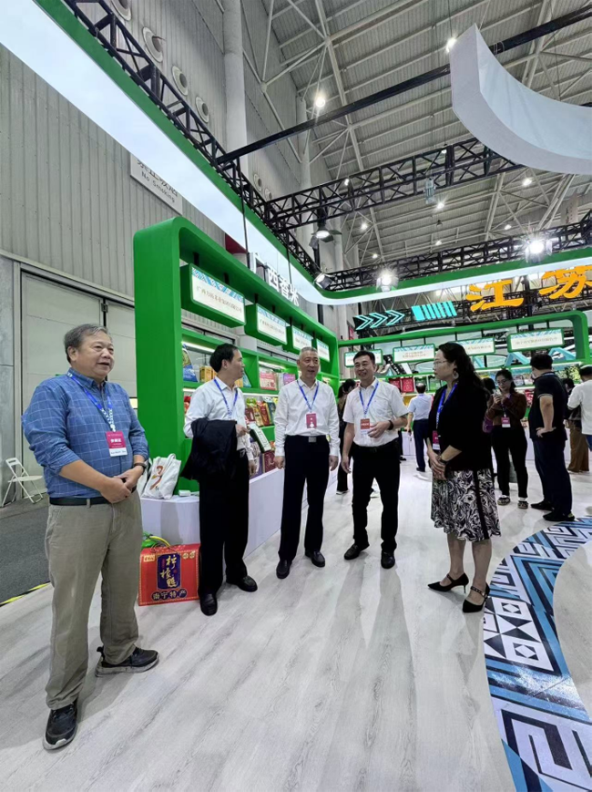 自治区政协党组成员周成方(左三)视察广西粮油展区(银益 摄)