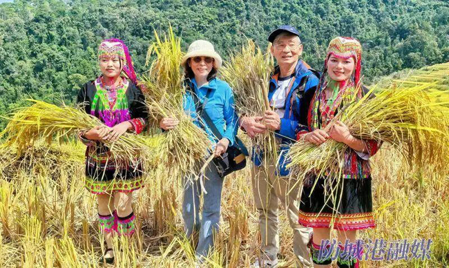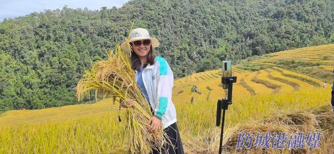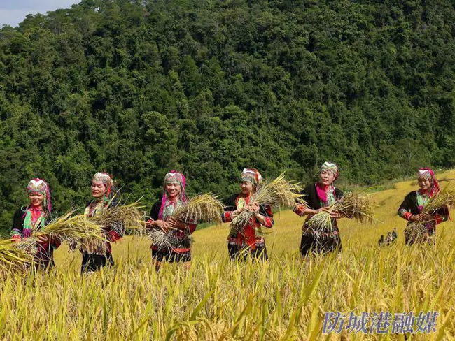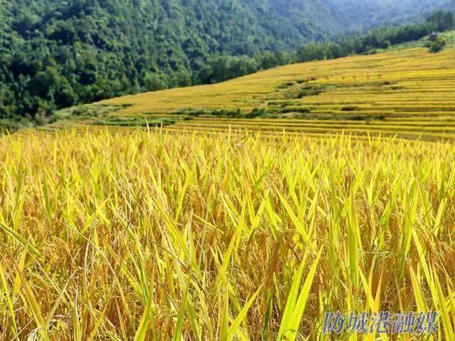 近日,防城港市上思县南屏瑶族乡常隆村百马屯百马梯田稻香四溢、田野铺金。瑶族群众身着节日盛装载歌载舞,与来自全国各地的游客欢聚一堂,共享丰收喜悦。