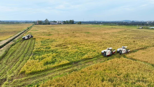 金色稻谷千重浪,又是一年丰收时。眼下,江平镇福珍富硒水稻种植基地的晚稻陆续进入成熟期,种植户们抢抓晴好天气,有序组织人力、机械开展收割作业,保障粮食颗粒归仓。
