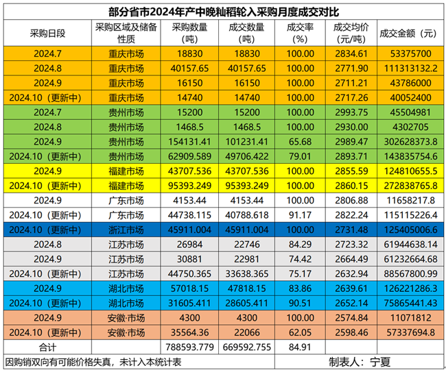 2024新产季中晚籼稻自登场以来,市场加工一直处于弱势盘整中,从基层收购点和烘干企业收购价来看,应该属于是全域性满足了最低收购价启动收购条件,因此笔者也一直在说中晚稻尤其是中晚籼稻启动最低收购价收购并无悬念。