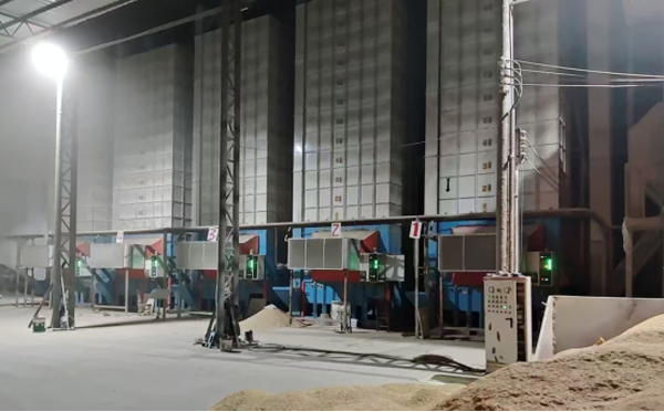 运粮车忙着将刚收割的湿谷卸车,送入烘干机进粮口