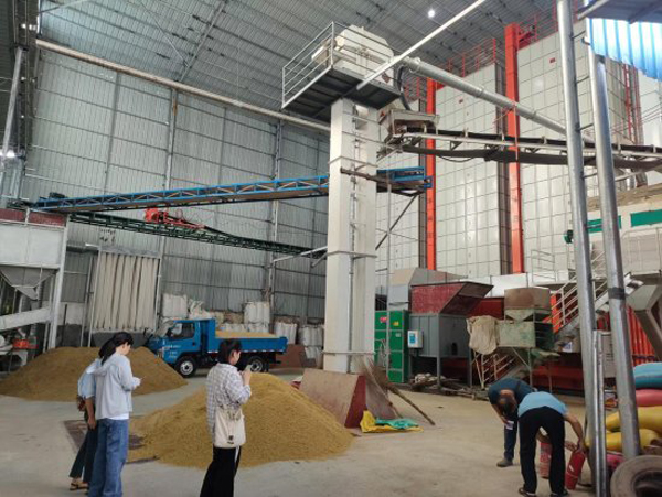朱雄志农机化专业合作社负责人介绍说:“稻谷收割后,为确保稻谷颗粒归仓,烘干也同样是关键的步骤,我社3台烘干机组,开足马力运转,每天能够烘干近100吨稻谷。稻谷依据含水量的不同,烘干时间也不同,少则12个小时,多则24个小时,烘干出仓的稻谷经输送带就能出炉装车拉入粮仓,烘干从7月中开始一直工作到12月末。可以解决周边乡镇水稻种植户们的粮食烘干难题。”