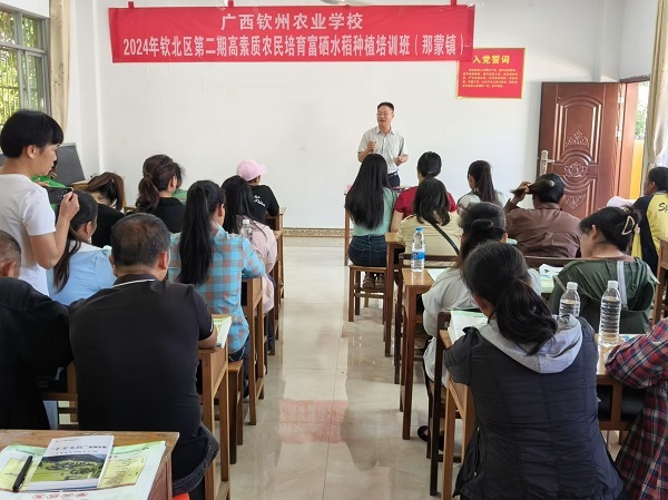 根据《自治区农业农村厅科技教育处关于做好2024年高素质农民提升行动培训工作的函》的指示精神和《广西钦州农业学校关于开展2024年高素质农民培育提升行动培训班的工作方案》的具体要求,11月15日至11月29日,由钦州市钦北区农业农村局组织、广西钦州农业学校承办,2024年钦州市钦北区第二期高素质农民培育“富硒水稻”种植培训班在钦州市钦北区那蒙镇开展。富硒水稻种植户、村委干部、周边农民等50余人参加培训学习。