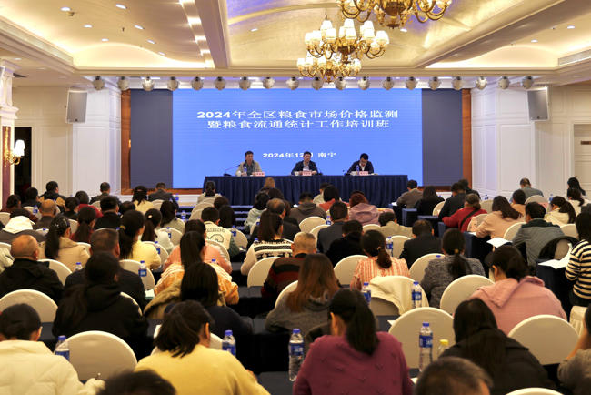 12月5日至6日,自治区粮食和物资储备局在南宁市举办2024年全区粮食市场价格监测暨粮食流通统计工作培训班,邀请国家粮食和物资储备局粮食储备司粮食流通统计专家温江波授课。自治区粮食和物资储备局党组成员、副局长覃家权出席培训班并作开班讲话。