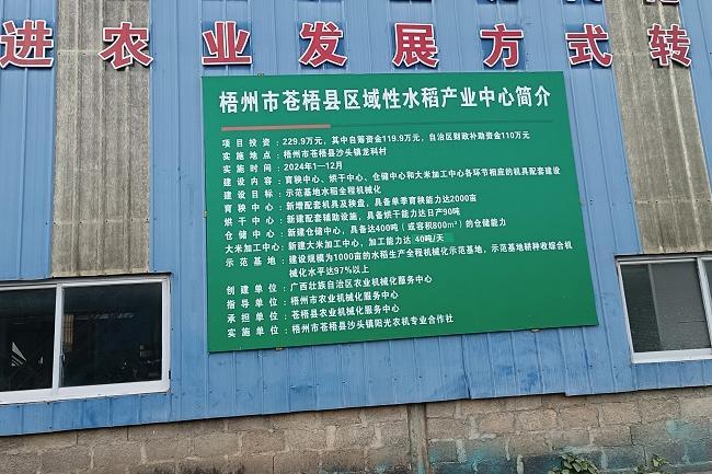 近期,苍梧县沙头镇的苍梧县区域性水稻产业中心,内部的配套设施配备完善,其中,育秧中心新增配套机具和秧盘,已具备单季育秧2000亩能力;烘干中心新建配套辅助设施,具备日产90吨烘干能力;仓储中心可储存400吨大米;大米加工中心日加工可达40吨;示范基地耕种收割的综合机械化水平达97%以上。