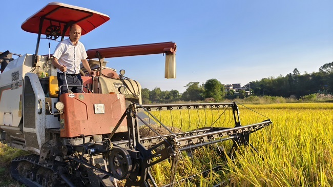 “我投资230万元建成苍梧县区域性水稻产业中心,设有育秧中心、稻谷烘干中心、仓储中心、大米加工中心及1000亩水稻生产全程机械化种植示范基地,带领群众规模发展粮食生产,解决群众粮食保存及加工的难题,让群众种粮更方便,更加心中有‘数’。”沙头镇阳光农机专业合作社社长许仲强说。