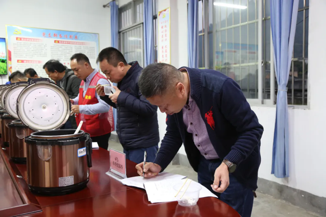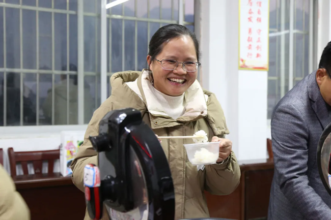 十几分钟后,龙布村公共服务中心2楼弥漫着诱人的饭香,众人的表情都有些迫不及待。
