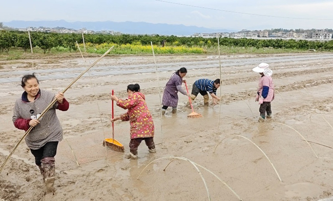 3月18日,天气晴好,在兴安县湘漓镇小水田村,一年一度的早稻播种育秧工作正如火如荼地进行着。农人们分工合作,忙得不亦乐乎,他们弯着腰,熟练地将稻种均匀撒播在秧床上,动作一气呵成,仿佛在与时间赛跑。翻耕土地、平整秧床、播撒稻种、覆盖薄膜……每一道工序都井然有序,只为确保秧苗健壮生长。