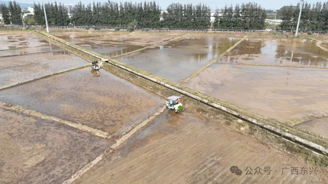 东兴市福珍水稻种植专业合作社董事长刘福珍说:“我们从2019年到现在,全部都是机器插秧,还有育秧也是,现在省力也省时。”