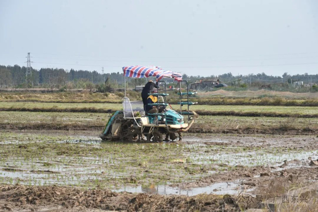 记者来到福珍水稻种植基地,多台自动化的农机设备在田间来回穿梭。旋耕机对土地进行精细翻耕,将土壤打碎、耙平,为早稻播种创造良好的苗床条件;插秧机则有序地进行插秧作业,一排排嫩绿的秧苗被精准地插入泥中,整齐排列,间距均匀,农民们只需要进行机器的操作和早稻补插工作即可。这些先进的农机设备不仅大大提高了春种的效率,还保证了种植的质量和密度,为早稻的生长提供了良好的开端。