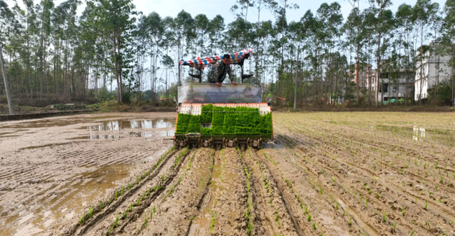 近年来,为了增加收入,提升土地利用率,博白县洪沣种养专业合作社通过流转经营,将冬种马铃薯与春种水稻无缝衔接,探索出“吨粮田”的高效种植模式。合作社负责人指着田间忙碌的农机介绍:“基地总面积有570亩,依托全程机械化作业,再有个两三天就能完成播种,效率比人工高出十几倍。”
