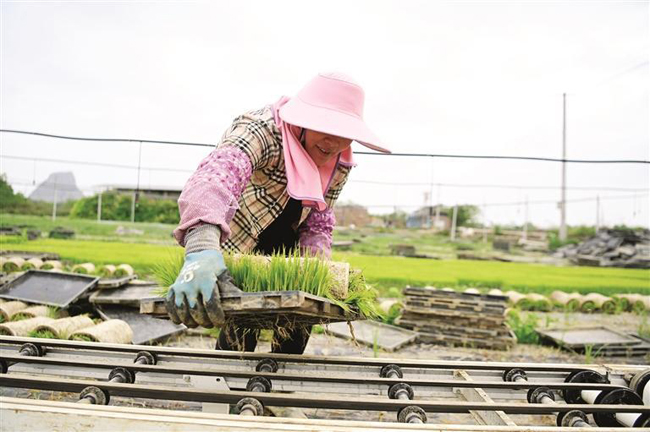 近日,在位于柳江区进德镇的柳江区区域性水稻产业中心,阳光洒满田间。村民熟练地将一块块秧苗卷成卷状,放入秧盘,通过传输轨道,如同“瑞士卷”的秧苗从田里直接传送上车。不到两小时,满满一车秧苗就运往土博镇,进行机械插秧。该中心一天出的秧苗,可满足600亩水稻种植。