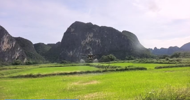 扶绥县渠黎镇那勒村无人机正在开展飞防、施肥作业