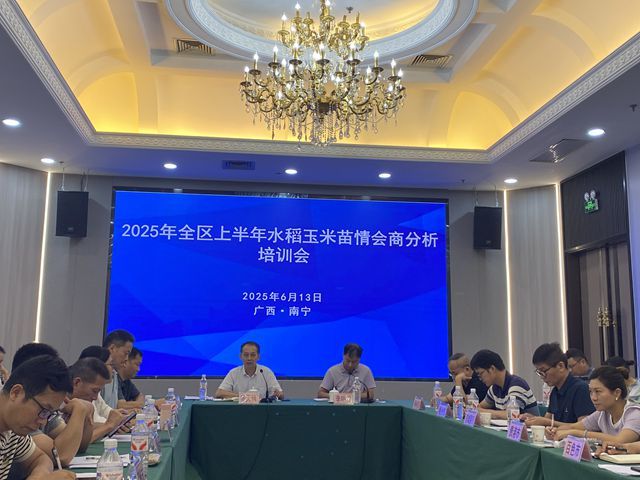 为会商研究全区上半年早稻和春玉米等粮食作物苗情长势情况,分析当前生产形势,商讨和部署落实当前提单产增粮措施,2025年6月13日自治区农业技术推广站在南宁组织召开2025年全区上半年水稻玉米苗情会商分析培训会。