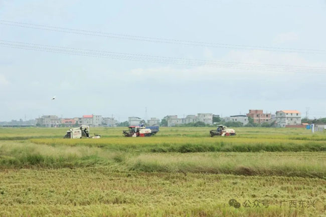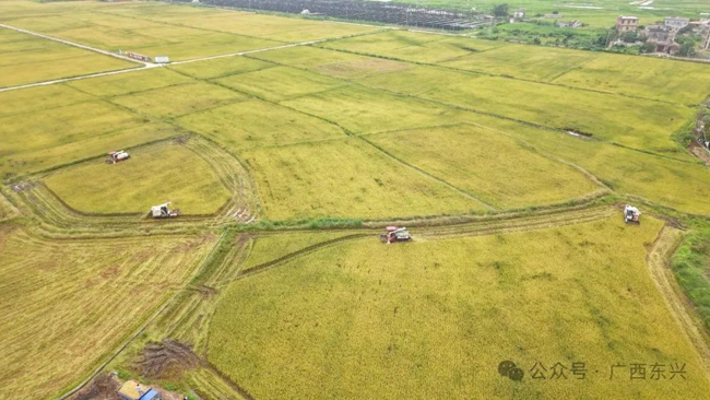 盛夏七月,沃野生金。正值“双抢”时节,东兴市千余亩早稻喜迎开镰,备耕画卷也铺陈开来,早稻收割和晚稻育秧交织出丰产丰收的“粮”辰美景。