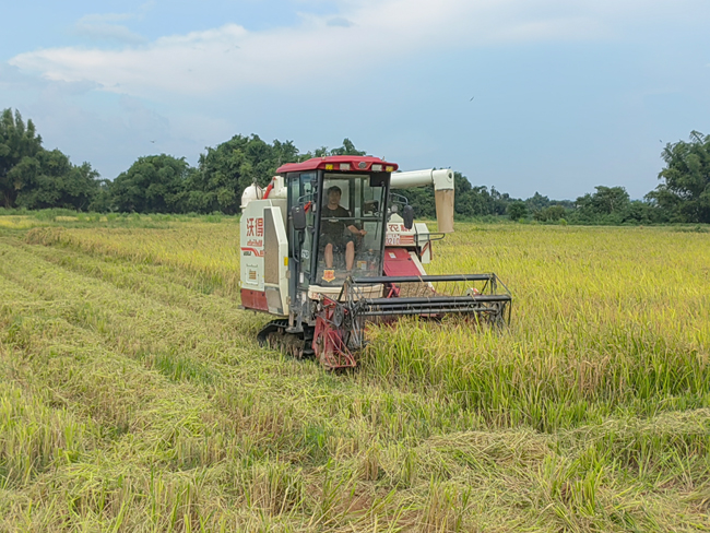 水稻联合收割机正在作业