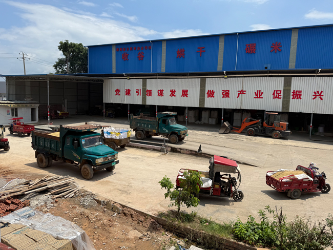 粮农运输水稻到烘干中心进行烘干