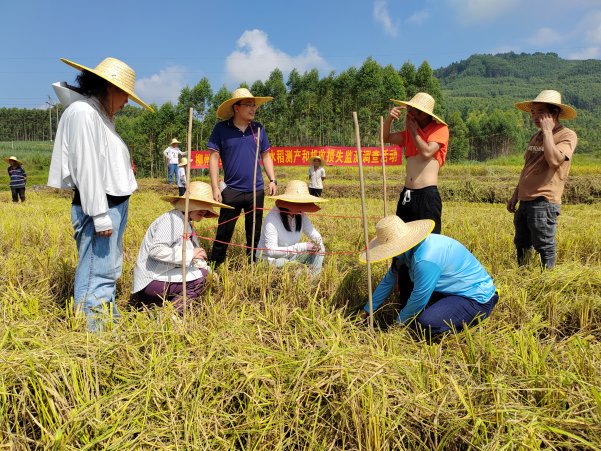 经最终测算,此次监测的“山香丝苗"水稻品种,实际亩产达498公斤,较鱼峰区当地水稻平均亩产高出24公斤,充分展现了区域性水稻中心项目在优质品种推广与科学种植技术应用方面的显著成效。与此同时,机收减损监测活动同步开展。