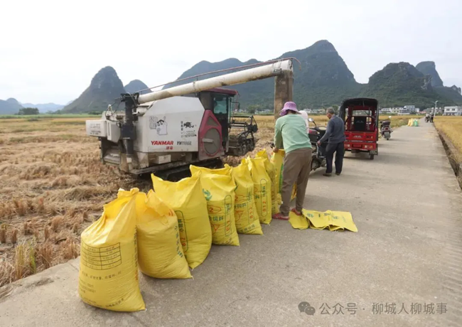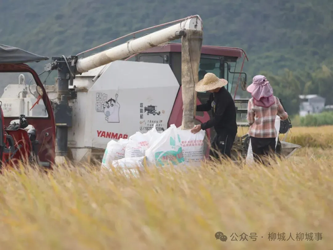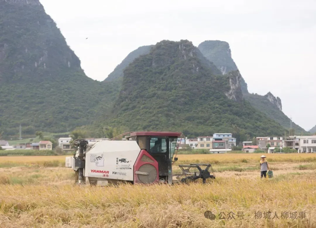 金秋时节,柳城县种植的15.7万亩晚稻逐渐成熟,各乡镇农户抢抓农时,收割水稻。