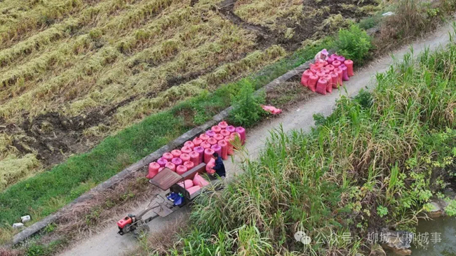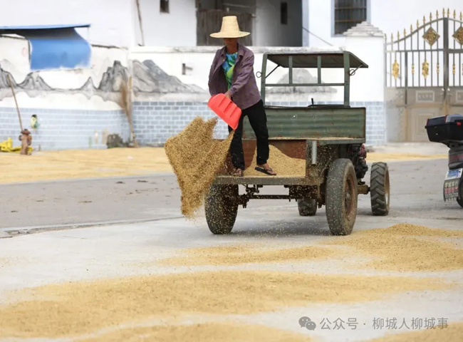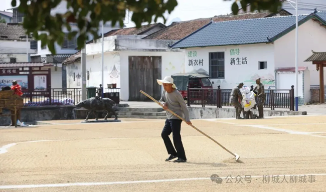 不远处的大户村木寮屯的空地,早已变成晒谷场。稻谷从田头运到这里,很快被摊成一块块金黄,成为这个季节最动人的丰收景象。