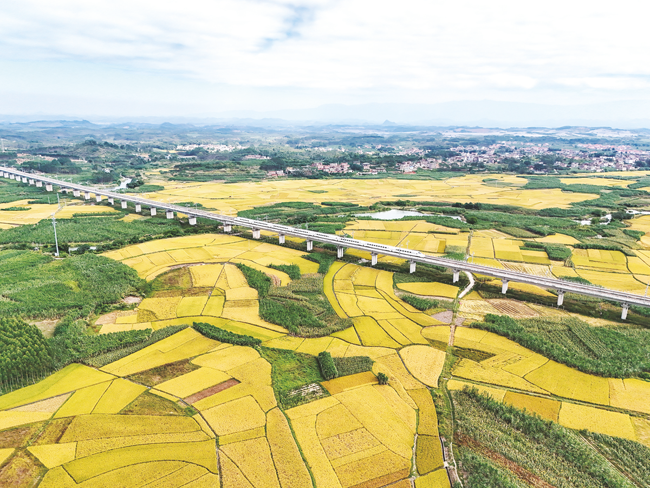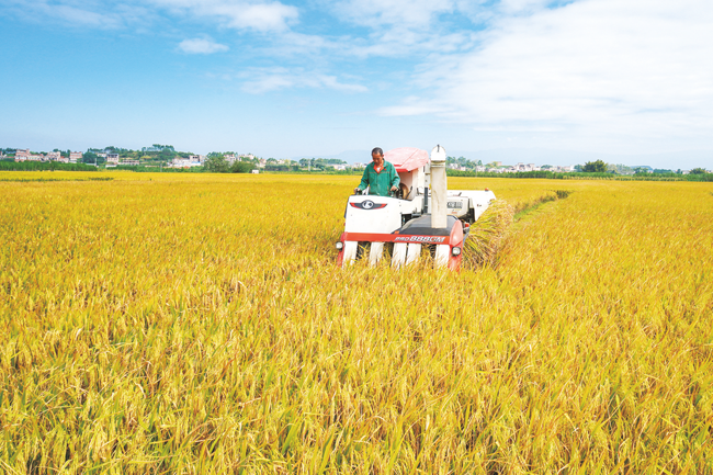 武鸣区府城镇陆杨村的近千亩晚稻迎来丰收。(梁挺 摄)