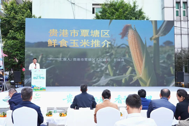 ▲覃塘区作题为《贵港市覃塘区鲜食玉米》推介。