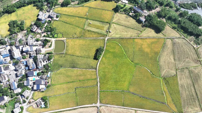 ▲金黄的稻谷在阳光下摇曳,宛如一片片流动的金海。
