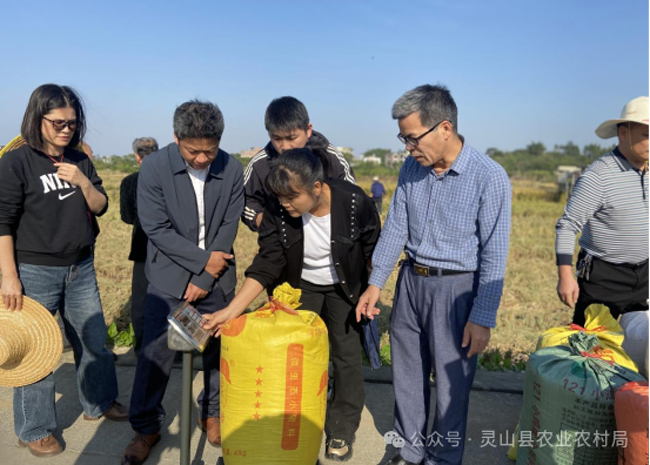 在随后的总结交流环节,梁雄副站长结合此次调研情况和测产结果,着重强调了水稻科学施肥“三新”技术的落地见效,是保障粮食安全、提升水稻品质、保护稻田生态环境的重要举措,对推动农业绿色高质量发展具有重要意义。本次现场测产数据与稻穗品相充分证明,灵山县推广的两种技术模式增产增收效果显著,契合绿色农业发展导向,具备在更大范围推广的价值。