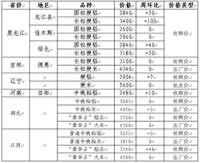 国有企业收购基本完成,农户稻谷已大多售出,预计节前中晚稻收购将进一步放缓。
