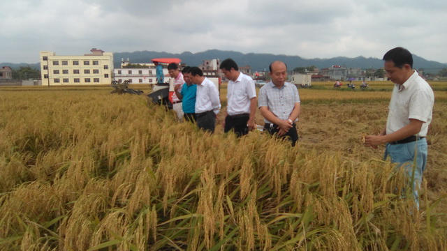 11月7日,自治区农业厅粮油处副处长莫宗标、高级农艺师黄学华,国家统计局广西调查总队副调研员杨明东在玉林市农委副主任周国明陪同下调研我市晚稻高产创建工作。